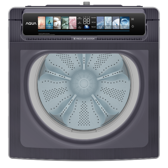 Với sức chứa 11 kg, máy giặt Aqua đáp ứng tốt nhu cầu giặt quần áo của gia đình đông người, kể cả chăn ga, đồ dày và lượng quần áo nhiều trong một lần giặt.