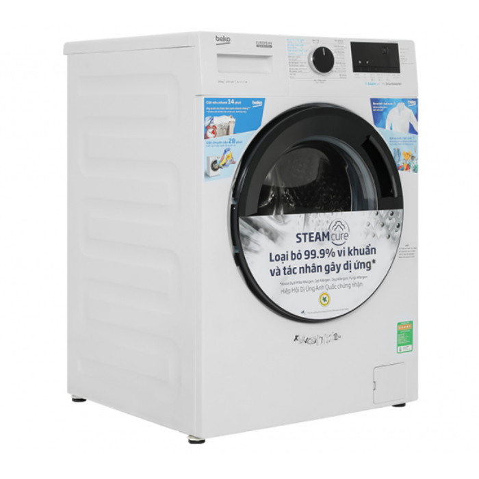 - Giặt nước nóng: Máy giặt Beko 10 kg này có thể sử dụng nước nóng đến 90°C, giúp đánh bay vết bẩn cứng đầu một cách dễ dàng, đồng thời cũng hỗ trợ diệt khuẩn và loại bỏ các chất gây dị ứng bám trên đồ giặt hiệu quả, nhằm góp phần bảo vệ sức khỏe người dùng tốt hơn.
