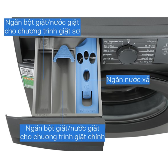 Vệ sinh ngăn chứa bột giặt: Tháo rời ngăn chứa và rửa sạch bằng nước.