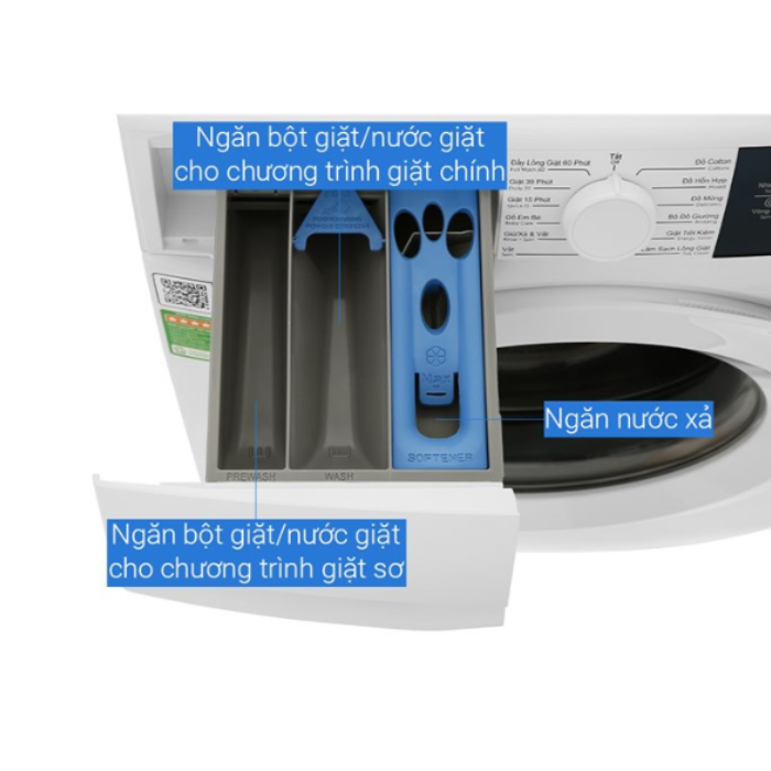 Vệ sinh ngăn chứa bột giặt: Tháo rời ngăn chứa và rửa sạch bằng nước.