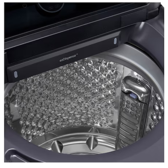 Nhờ công nghệ TurboDrum, lồng giặt và mâm giặt quay ngược chiều nhau tạo ra dòng nước mạnh mẽ, đánh bay vết bẩn cứng đầu. Đồng thời, quá trình này vẫn đảm bảo quần áo không bị xoắn rối hay hư hại.