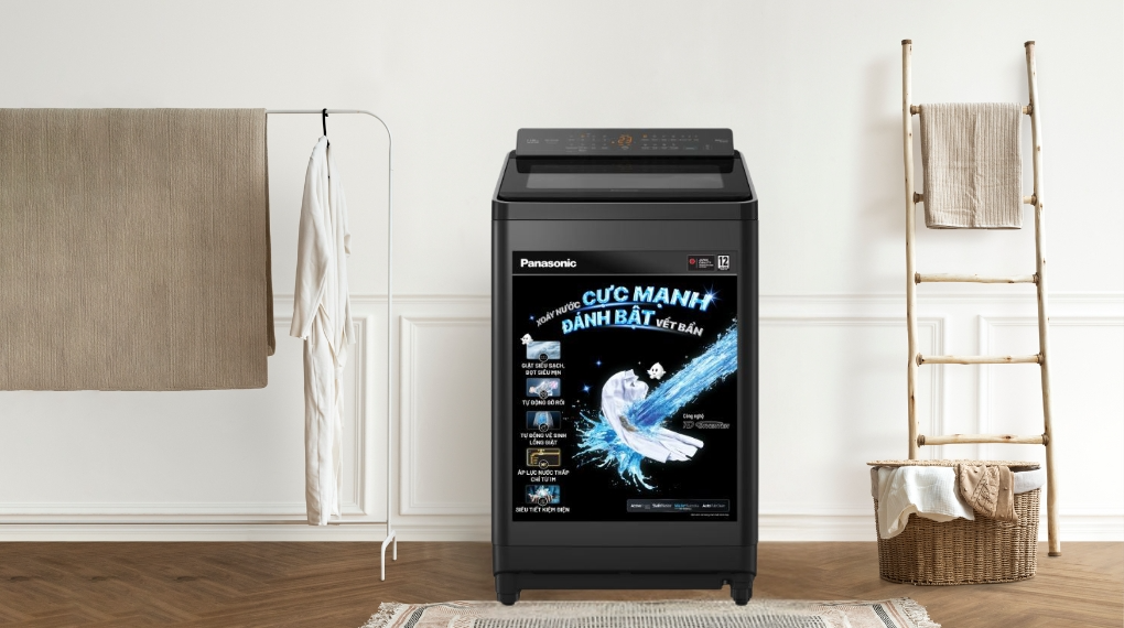 - Máy giặt Panasonic có thiết kế cửa trên lồng đứng, kiểu dáng cứng cáp, phù hợp với không gian ban công hoặc sân giặt của các gia đình truyền thống. Dáng máy cao gọn, dễ thao tác khi sử dụng hàng ngày.
