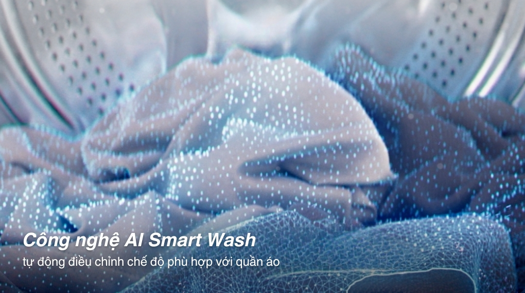 - AI Smart Wash sử dụng trí tuệ nhân tạo để phân tích điều kiện giặt và tự động điều chỉnh chế độ phù hợp, đơn giản hóa thao tác và nâng cao hiệu quả làm sạch theo từng mẻ giặt thực tế.