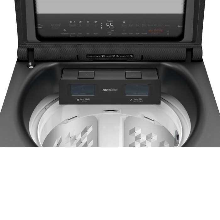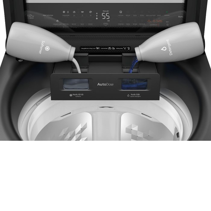- Công nghệ Autodose - người dùng có thể trực tiếp đổ một lần nước xả và nước giặt vào ngăn đựng và tận hưởng thời gian thảnh thơi vì công nghệ này cho phép máy tự phân bổ nước giặt/ nước xả theo khối lượng quần áo giặt mà không cần phải đong đo bằng các thao tác thủ công.