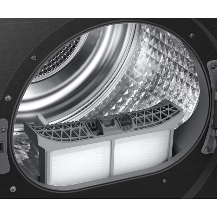 - Máy sấy Samsung DV90T6240LB/SV ứng dụng công nghệ sấy bơm nhiệt, giúp làm khô quần áo nhẹ nhàng, tiết kiệm năng lượng hiệu quả.