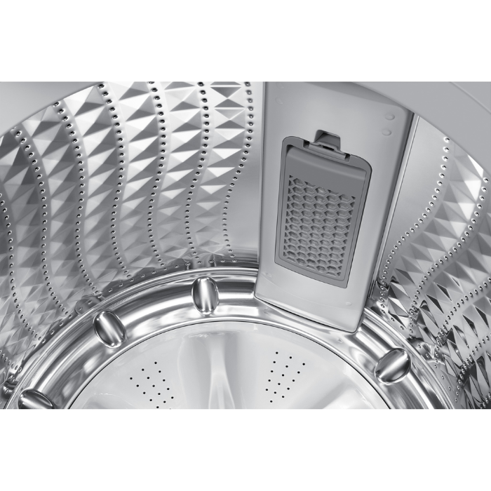 Bên trong, lồng giặt của máy được làm từ chất liệu thép không gỉ cực kỳ chắc chắn và bền bỉ. Hơn nữa chất liệu này khá ít bám bẩn nên việc vệ sinh lồng giặt cũng diễn ra nhanh chóng và dễ dàng hơn.