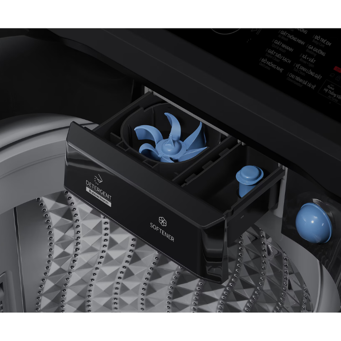 - Hệ thống vắt khô Air Turbo tăng tốc độ quay vắt giúp quần áo khô nhanh hơn, đặc biệt hữu ích vào những ngày trời nồm ẩm.