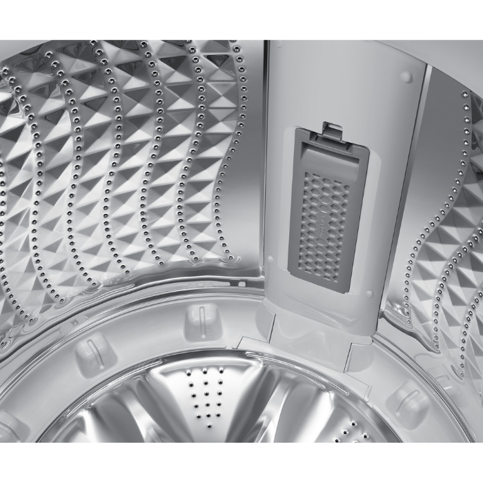 - Lồng giặt làm bằng thép không gỉ cao cấp, hạn chế bám cặn và vi khuẩn, giúp bảo vệ quần áo tối ưu trong suốt quá trình vận hành.
