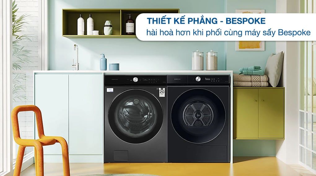 - Samsung Inverter 24 kg WF24B9600KV/SV, thuộc dòng máy giặt cửa trước và sở hữu gam màu đen sang trọng. Ngoài ra, máy còn được thiết kế dạng phẳng - Bespoke, mang lại cho bạn góc nhìn như đang được lắp âm và sẽ vô cùng hài hoà khi phối cùng những mẫu máy sấy Bespoke khác của Samsung. Giúp nâng tầm không gian sống, toát lên vẻ đẹp tinh tế.