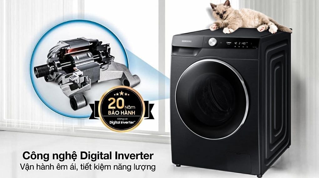 -Máy giặt sử dụng động cơ truyền động gián tiếp (dây Curoa) kết hợp công nghệ Digital Inverter giúp vận hành êm ái, giảm tiếng ồn và tiết kiệm năng lượng.
