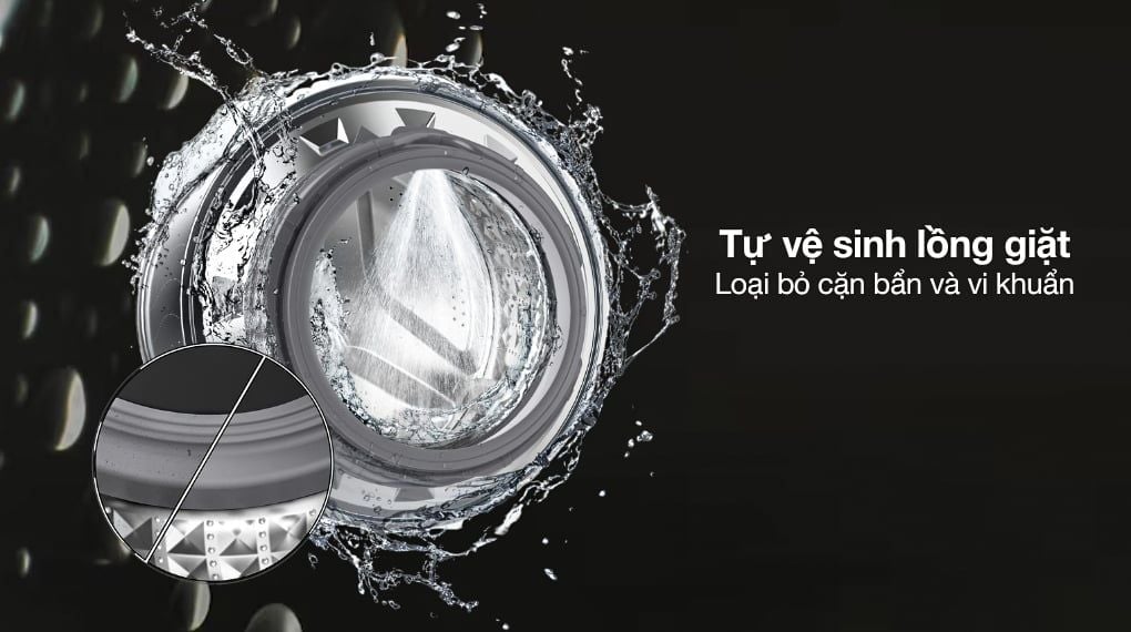 - Tính năng tự vệ sinh lồng giặt loại bỏ cặn bẩn và vi khuẩn, nâng cao tuổi thọ máy.