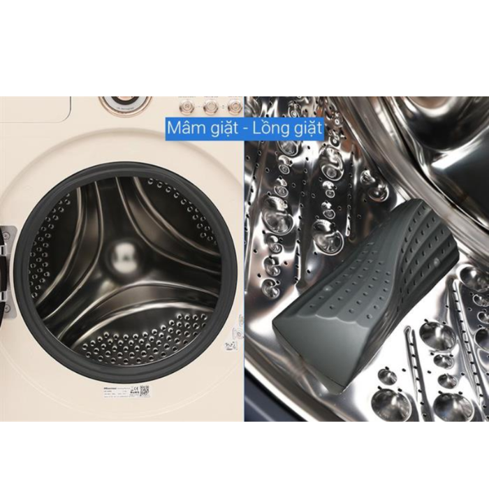 - Lồng giặt thép không gỉ kết hợp vòng đệm kháng khuẩn, giúp giảm ma sát, bảo vệ sợi vải và hạn chế vi khuẩn phát triển.