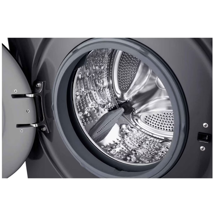 Chất liệu cũng là điểm cộng khi máy giặt sấy LG sở hữu cửa kính cường lực chắc chắn, lồng giặt bằng thép không gỉ bền bỉ, hạn chế bám cặn và nấm mốc. Vỏ ngoài phủ lớp sơn tĩnh điện sang trọng, chống gỉ sét, giúp sản phẩm duy trì độ bền đẹp theo thời gian.