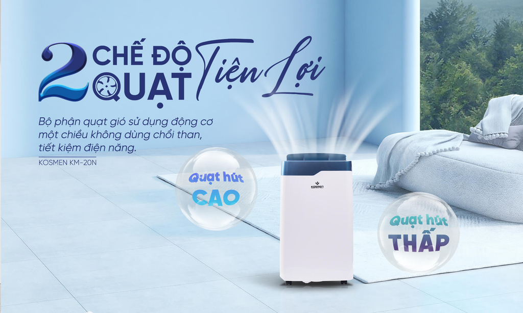 2 chế độ quạt tiện lợi của máy hút ẩm Kosmen KM-20N