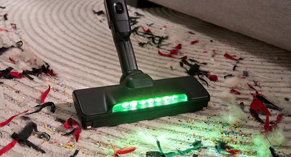 Máy hút bụi Hitachi PV-XHW4P được trang bị 7 đèn LED trắng và xanh ở đầu hút, giúp chiếu sáng những vị trí tối như gầm giường, gầm tủ hoặc các góc khuất, tăng khả năng quan sát khi dọn dẹp.