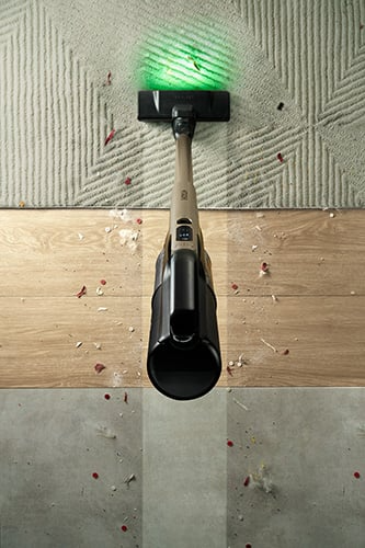 Đặc biệt, công nghệ hút sâu kết hợp đầu hút sàn chống rối giúp hạn chế tóc quấn vào trục quay, tiết kiệm thời gian vệ sinh máy. Đèn LED xanh tích hợp trên đầu hút giúp phát hiện bụi siêu nhỏ mà mắt thường khó nhìn thấy, tăng cường khả năng làm sạch ngay cả trong môi trường thiếu sáng.