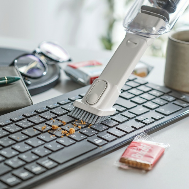 - Bàn phím và máy tính: hút sạch bụi mịn, tóc, vụn giấy trong khe phím.