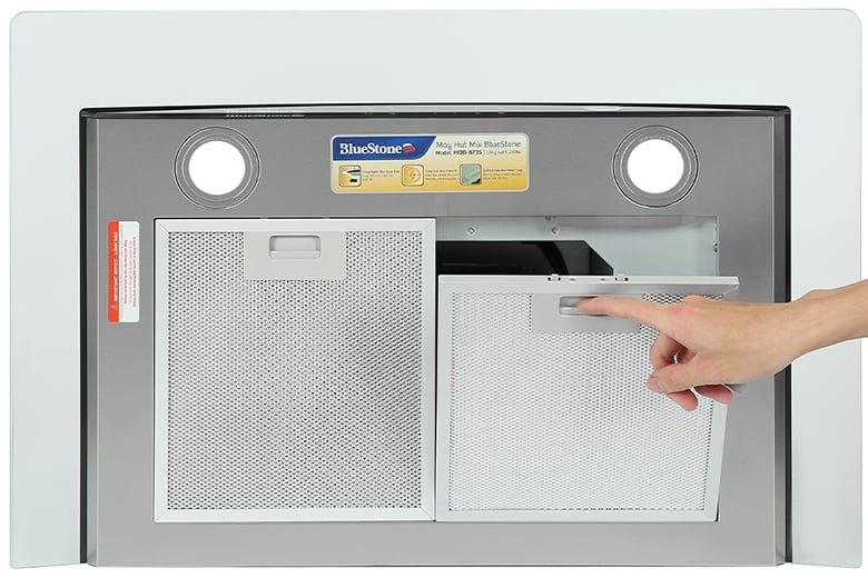 - Máy hút mùi BlueStone tích hợp 2 cơ chế gồm hút đẩy trực tiếp bằng ống thoát khí và tuần hoàn bằng than hoạt tính