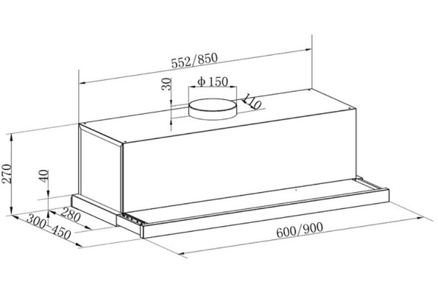 Thiết kế pull-out cho phép kéo phần hút mùi ra khi sử dụng và thu gọn lại khi không cần thiết. Cơ chế này giúp tăng diện tích hút mùi trực tiếp trên bếp nấu, đồng thời tiết kiệm không gian và giữ tính thẩm mỹ cho tủ bếp.