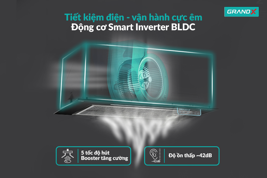 Một trong những điểm mạnh nhất của Hút mùi GX H70F79G là sử dụng Smart Inverter BLDC Motor, công nghệ động cơ không chổi than thế hệ mới.