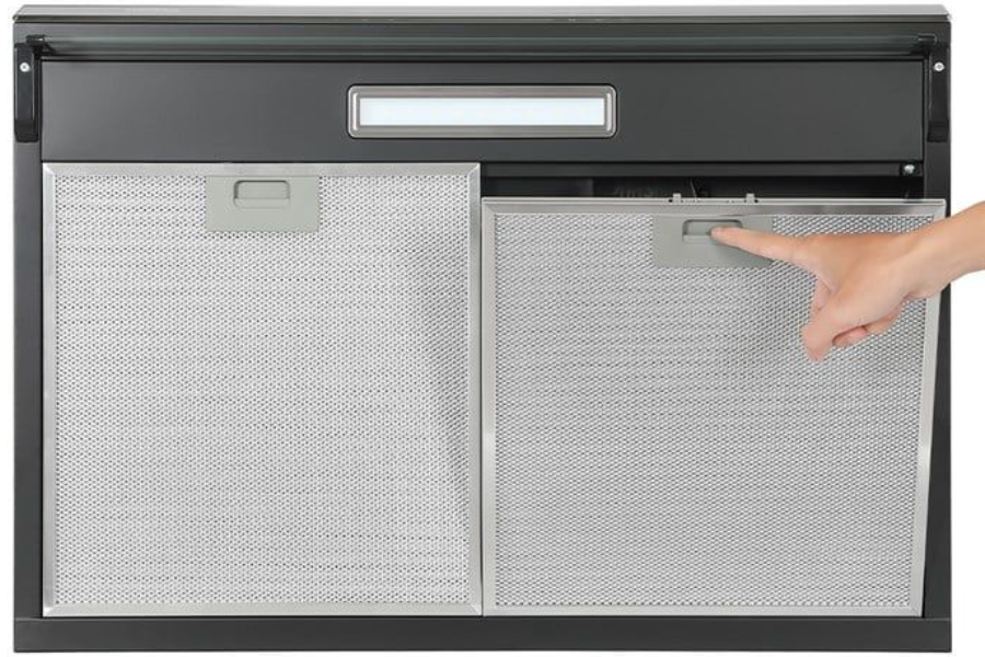 Tháo lưới lọc mỡ bằng nhôm để vệ sinh định kỳ, ngâm nước ấm pha xà phòng rồi lau chùi sạch sẽ.