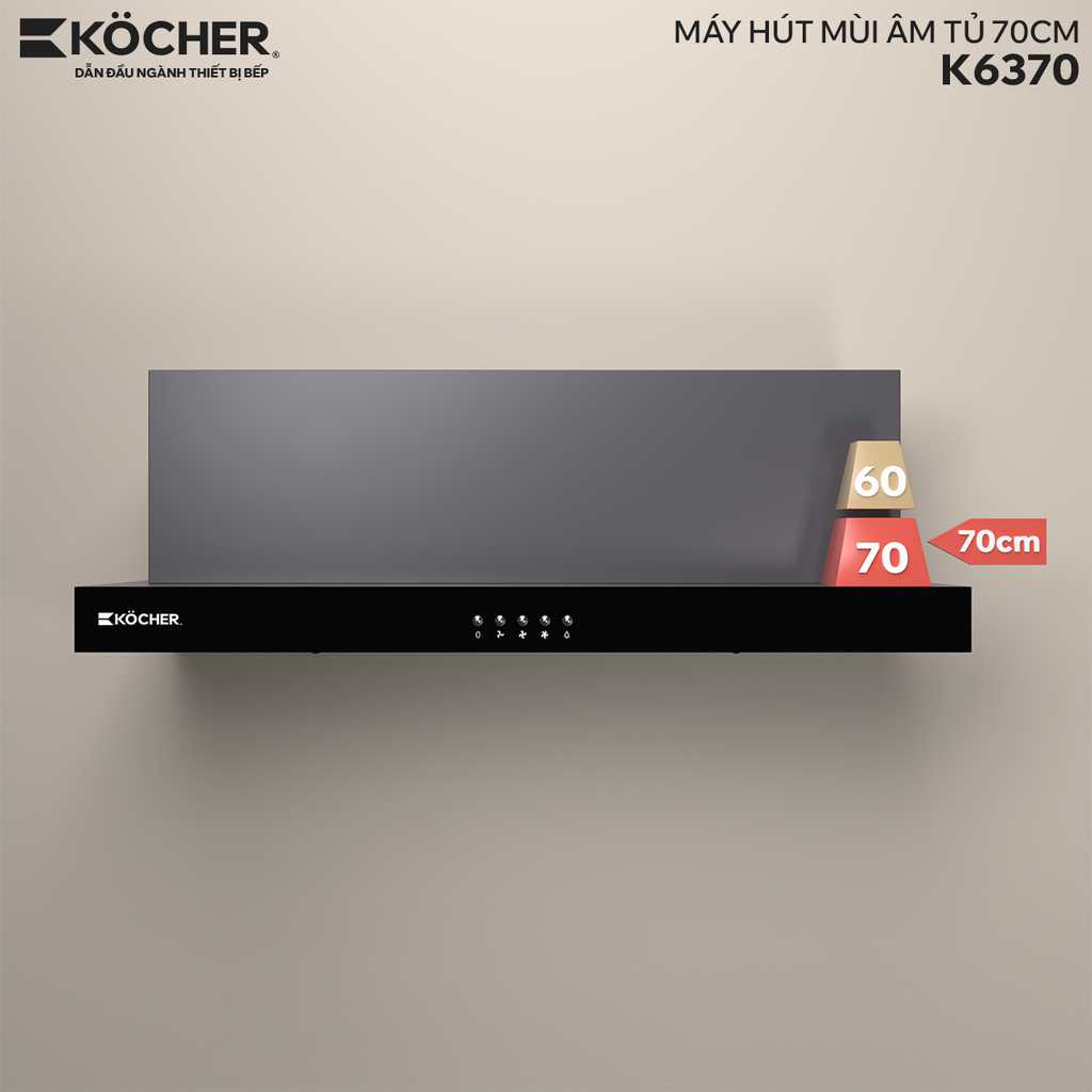 Với thiết kế phẳng rộng 70cm, công suất hút mạnh mẽ, vận hành êm ái và khả năng khử mùi hiệu quả, máy hút mùi âm tủ Köcher K6370 là lựa chọn đáng tin cậy cho những căn bếp yêu cầu sự gọn gàng, sạch sẽ và hiện đại. Sản phẩm đáp ứng tốt nhu cầu nấu ăn của gia đình Việt – từ các món nhẹ mùi đến chiên xào nhiều khói – đồng thời duy trì độ bền cao nhờ cấu trúc chắc chắn và tiêu chuẩn sản xuất ISO 9001:2015. Nếu bạn đang tìm một mẫu máy hút mùi âm tủ 70cm vừa đẹp, dễ dùng, vừa mang lại hiệu quả hút mùi vượt trội, Köcher K6370 là lựa chọn phù hợp để nâng cấp không gian bếp và trải nghiệm nấu nướng mỗi ngày.