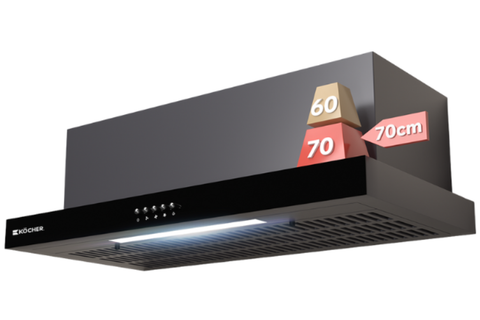 K6370 sở hữu chiều ngang 70cm, phù hợp với các hệ tủ bếp kích thước lớn và bếp nấu đôi. Kiểu dáng phẳng – liền mạch – tối giản không chỉ mang đến sự sang trọng cho căn bếp mà còn giúp tiết kiệm diện tích tối đa so với các dòng hút mùi kéo–đẩy truyền thống.