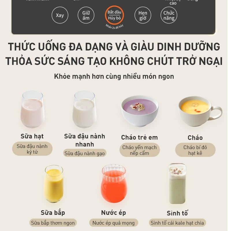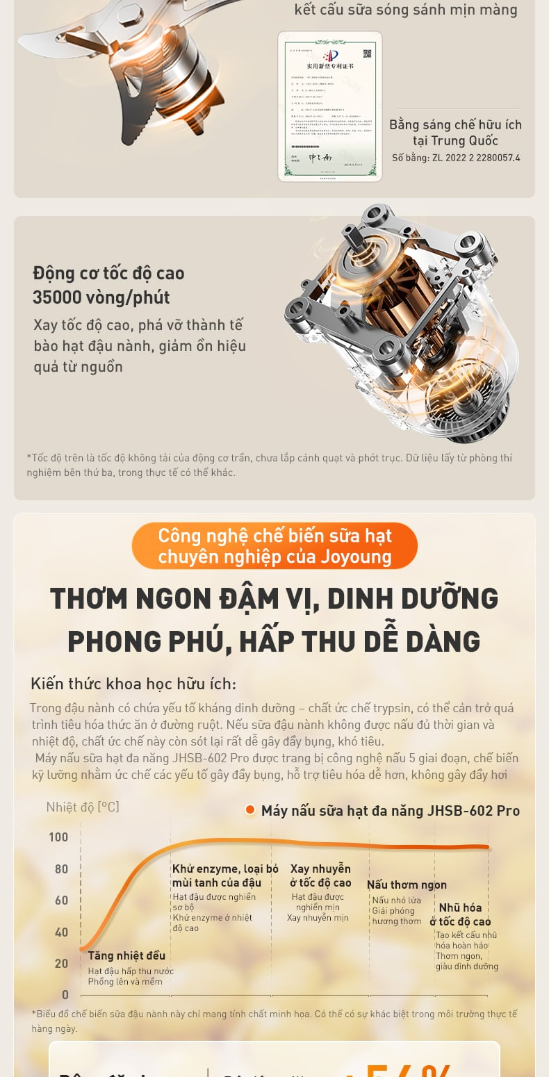 Bên cạnh đó, máy nấu sữa hạt đa năng JHSB-602 Pro được trang bị công nghệ nấu 5 giai đoạn, mô phỏng quy trình nấu truyền thống nhưng chính xác và tối ưu hơn. Sữa được nấu chín kỹ, ức chế các yếu tố gây đầy bụng, hỗ trợ tiêu hóa tốt hơn và giảm cảm giác đầy hơi sau khi uống.