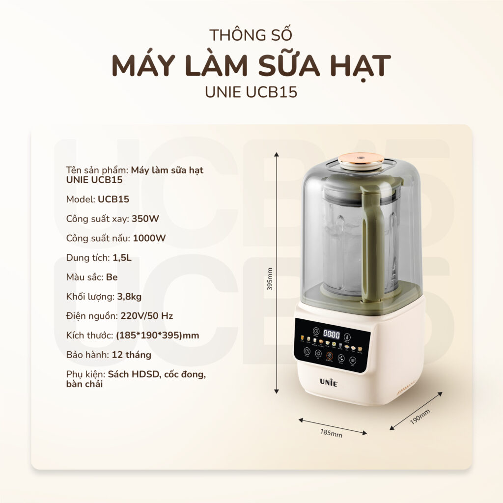 Máy làm sữa hạt UNIE UCB15 – Đột phá công nghệ 2025, êm hơn, đa năng hơn!