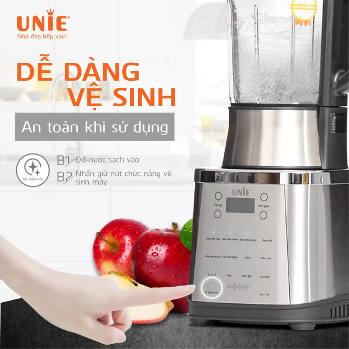 UNIE cam kết 100% bộ phận phận tiếp xúc với thực phẩm bằng INOX 304. Vấn đề chất liệu sản xuất luôn được người dùng quan tâm hàng đầu.