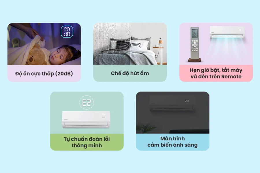 Màn hình LCD trên dàn lạnh tự động giảm độ sáng khi đèn phòng tắt, tạo không gian dễ chịu hơn cho giấc ngủ.