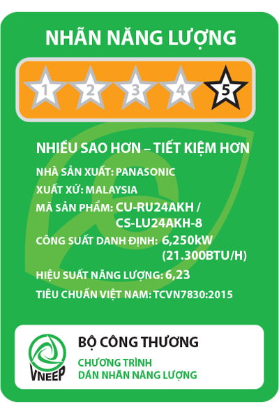 Sử dụng môi chất lạnh R32 thân thiện với môi trường, hiệu suất năng lượng CSPF đạt 6,23 W/W (5 sao), máy lạnh Panasonic CU/CS-LU24AKH-8 là lựa chọn phù hợp cho gia đình và văn phòng hiện đại.