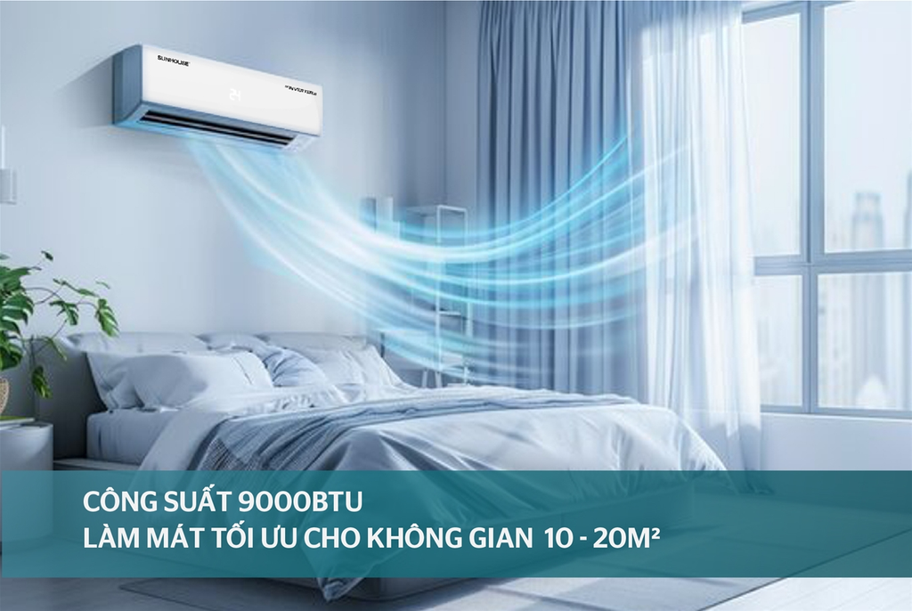 Công suất 9000BTU (1HP), phù hợp cho phòng diện tích 10 - 20m2
