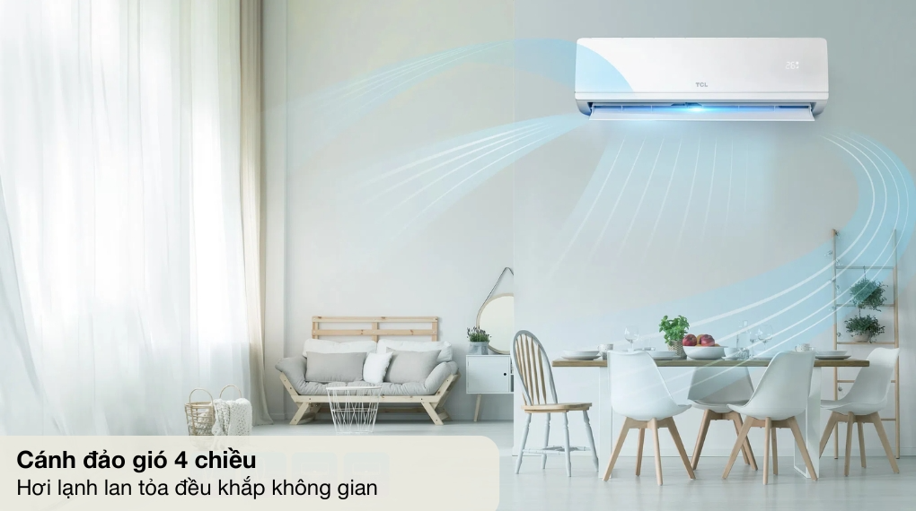 - Cánh đảo gió tự động điều chỉnh hướng lên – xuống và trái – phải giúp khí lạnh lan tỏa đồng đều, hạn chế hiện tượng lạnh cục bộ hoặc luồng gió thổi trực tiếp gây khó chịu.
