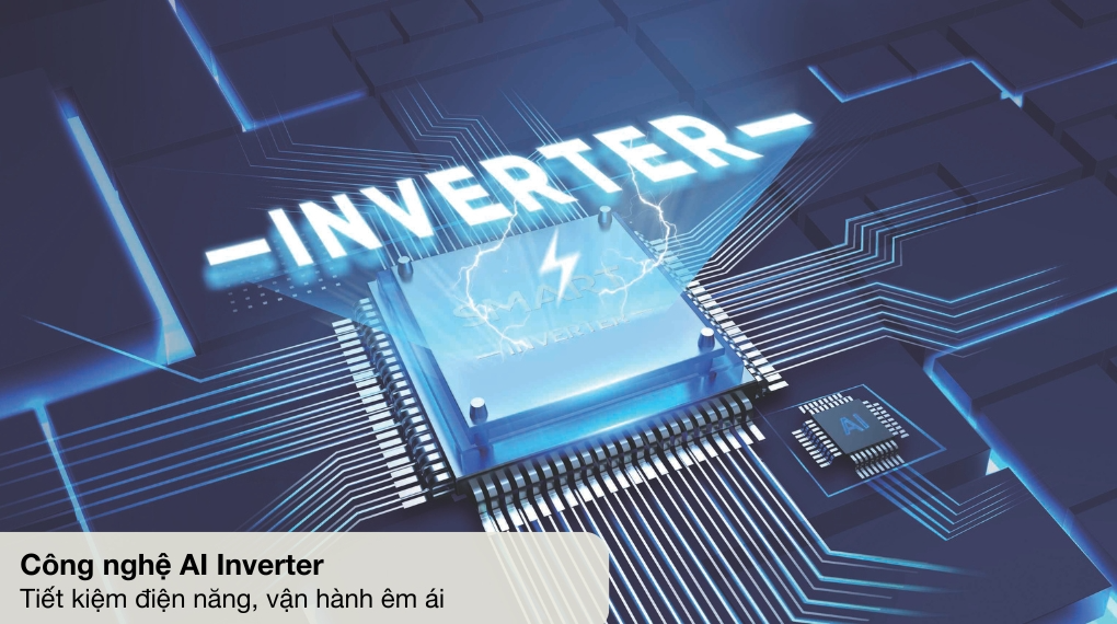 - Công nghệ AI Inverter thông minh giúp điều chỉnh hoạt động của máy nén theo thời gian thực, đảm bảo máy lạnh hoạt động êm ái, ổn định và tiết kiệm điện đáng kể.