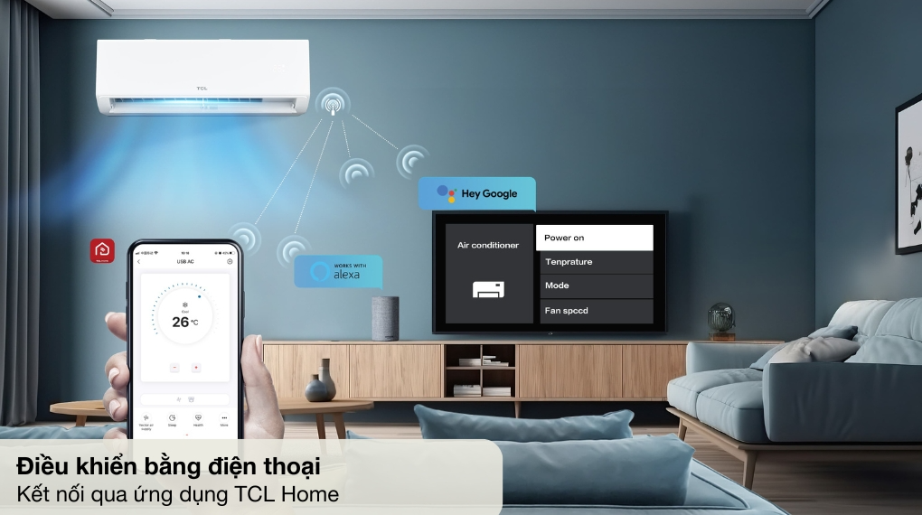 - Kết nối Wifi – cho phép điều khiển máy từ xa bằng điện thoại qua ứng dụng TCL Home.