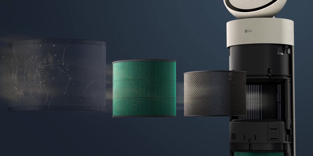 Hệ thống lọc gồm màng lọc thô, màng lọc than hoạt tính và màng lọc HEPA13 giúp loại bỏ bụi bẩn, vi khuẩn, virus, mùi hôi và các tác nhân gây dị ứng hiệu quả. Công nghệ UVnano™ diệt khuẩn trên cánh quạt đạt hiệu quả đến 99,998%, kết hợp ion âm giúp làm sạch không khí toàn diện.