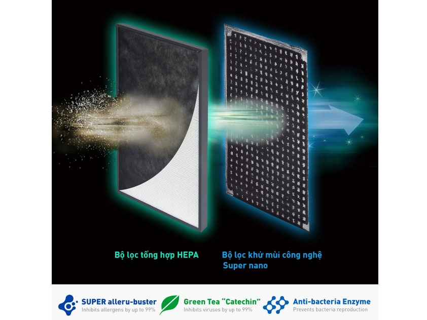 - Lớp màng HEPA thu giữ bụi siêu mịn, vi khuẩn, virus.