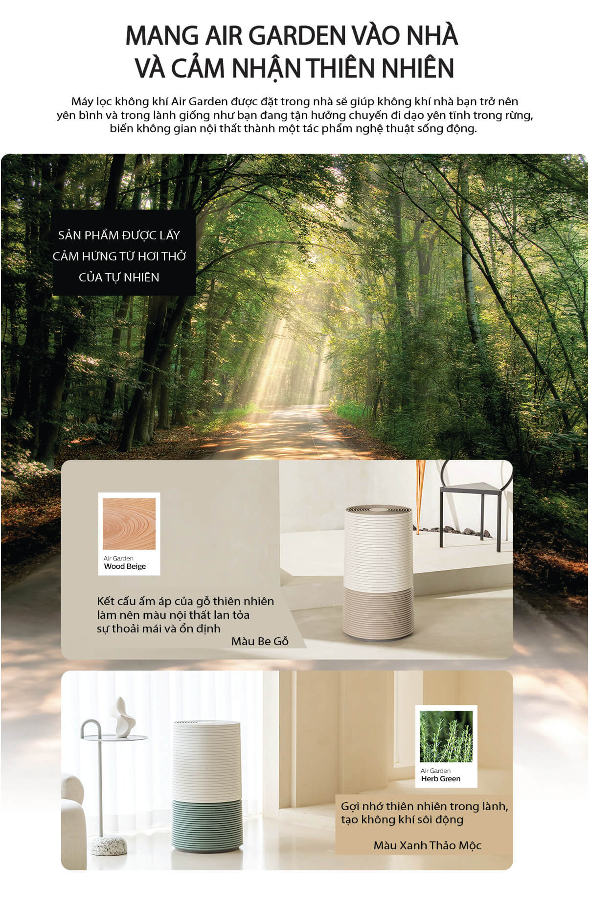 Máy lọc không khí Wells Air Garden có thiết kế tinh tế, hiện đại, phù hợp với mọi không gian nội thất trong gia đình. Với hai tùy chọn màu sắc trang nhã là Be Gỗ và Xanh Thảo Mộc, sản phẩm mang đến không chỉ tính thẩm mỹ mà còn cảm giác ấm áp và thư giãn cho không gian sống. Đặc biệt, kích thước nhỏ gọn, mỏng nhẹ giúp máy dễ dàng di chuyển và phù hợp cho nhiều kiểu căn hộ, chung cư khác nhau.