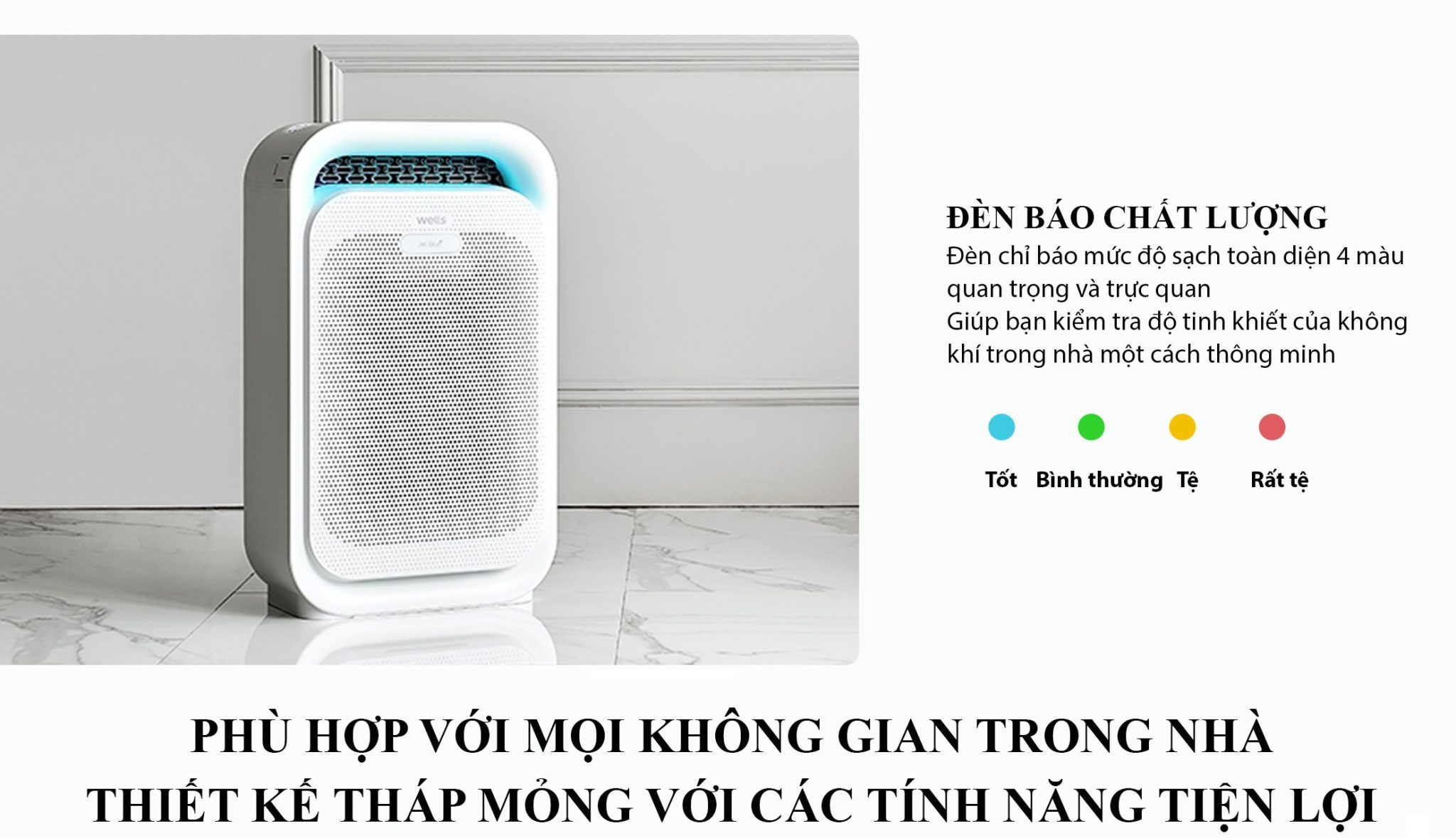 Cảm biến ánh sáng: Máy tự động phát hiện độ sạch của không gian lọc và hiển thị mức độ ô nhiễm qua màu sắc ánh sáng.