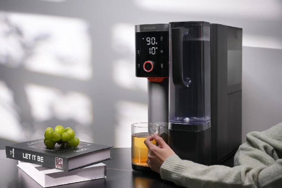 Hệ thống bình chứa thông minh bao gồm bình chứa nước máy dung tích 5 lít, giúp giảm tần suất phải thêm nước vào máy. Bình chứa nước tinh khiết dung tích 1.6 lít có thể tháo rời, tiện lợi để lấy nước trực tiếp ra ngoài hoặc vệ sinh. Ngoài ra, bình chứa nước lạnh bên trong máy có dung tích 0.9 lít, đảm bảo nước lạnh luôn sẵn sàng. Vật liệu ABS của bình chứa nước máy được chứng nhận loại bỏ 99.9% vi khuẩn E.coli và Staphylococcus aureus, đảm bảo vệ sinh cho nguồn nước đầu vào và tăng cường an toàn cho toàn bộ hệ thống.