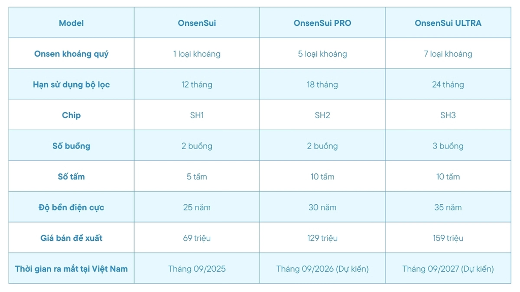 Điểm nhấn tạo nên sự khác biệt của OnsenSui không chỉ nằm ở công nghệ “2 trong 1” – Vừa điện giải siêu hydro vừa tái tạo nguồn khoáng Onsen quý hiếm – Mà còn ở giới hạn phân phối: Chỉ 1.000 suất trong năm 2025, chia thành 3 đợt mở bán. Sau giai đoạn này, từ năm 2026, Fuji Smart sẽ tập trung vào các dòng Onsen cao cấp đánh dấu bước tiến mới trong việc nâng tầm trải nghiệm nước uống chuẩn Nhật Bản.
