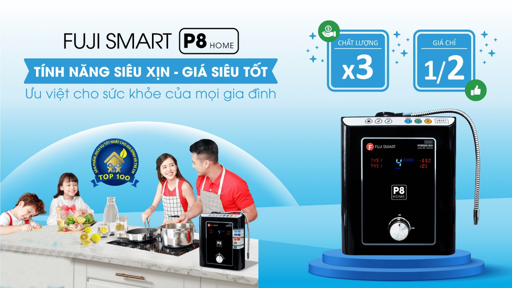 Không chỉ có mức giá phù hợp với người Việt, Fuji Smart P8 Home là sản phẩm được tập đoàn Fuji Nhật Bản nghiên cứu dành riêng cho thị trường Việt Nam. Tập đoàn Fuji Nhật Bản đã trải qua quá trình khảo sát, phân tích nguồn nước trên 63 tỉnh thành của Việt Nam, từ đó tích hợp hàng loạt công nghệ tân tiến: công nghệ lọc Premium Dual Complex thế hệ mới 2021, công nghệ điện giải giàu Hydro, điện cực SMART 4.0 hiệu suất cao…