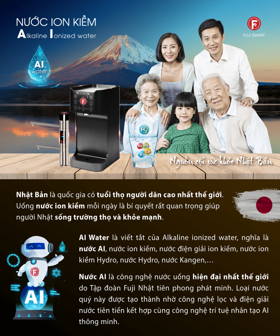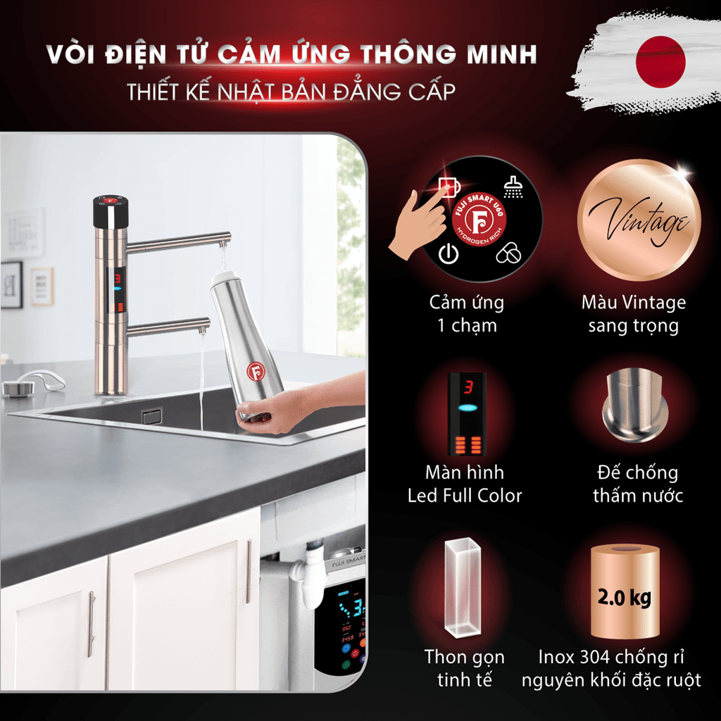 2. Máy lọc nước điện giải ion kiềm nóng lạnh Fuji Smart U60 HC mang đến giải pháp sống khỏe của mọi nhà