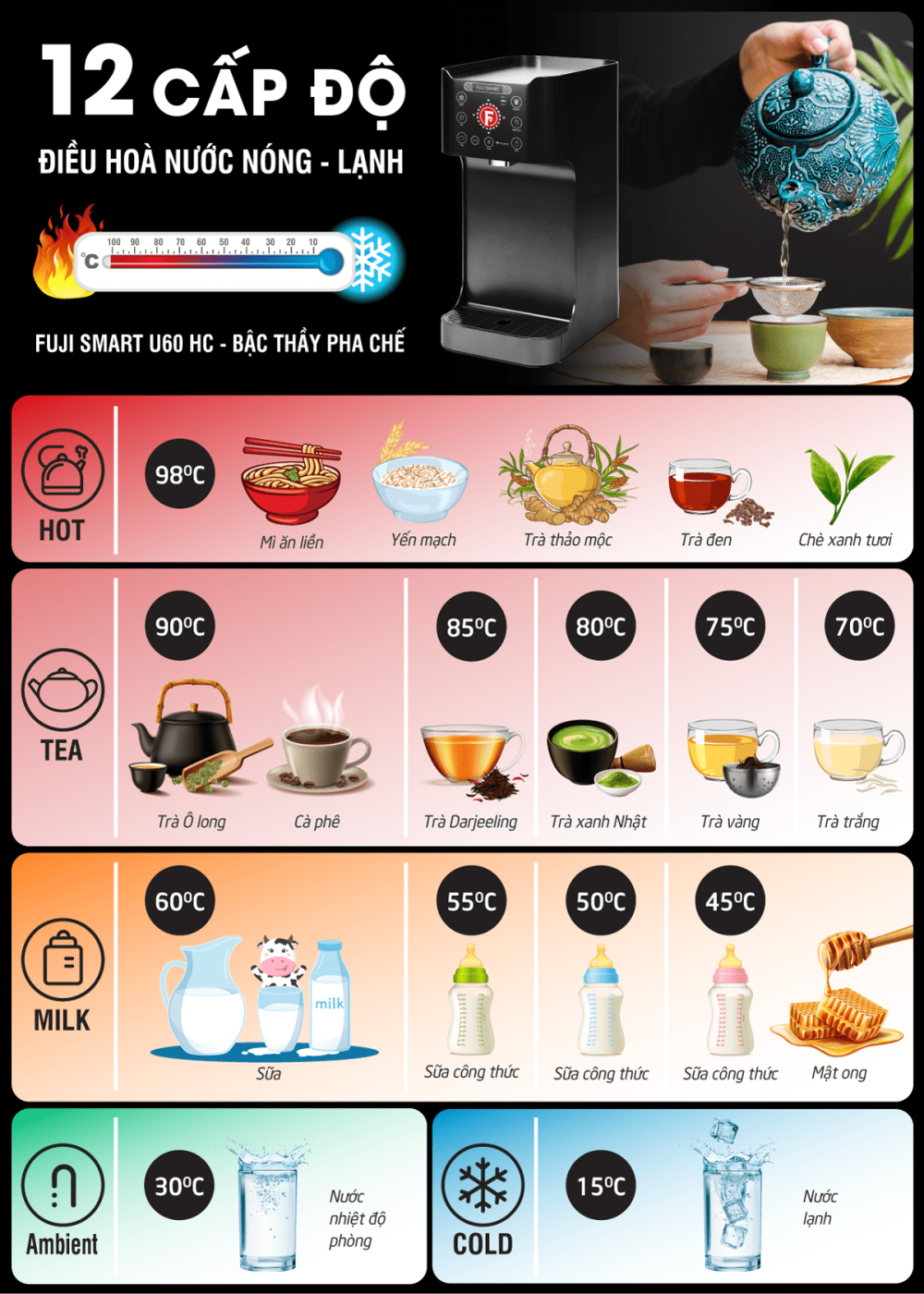 Fuji Smart U60 HC là bậc thầy pha chế với 12 cấp nóng lạnh