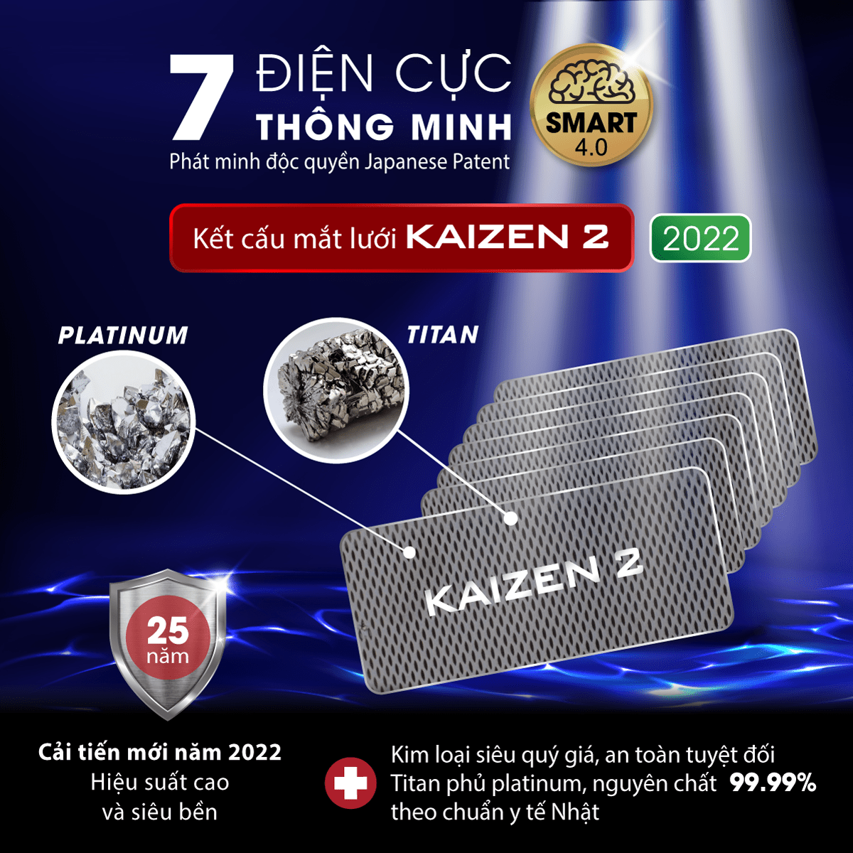 3.1. Trang bị 7 tấm điện cực SMART 4.0 kết cấu mắt lưới công nghệ Kaizen 2 hiệu suất cao