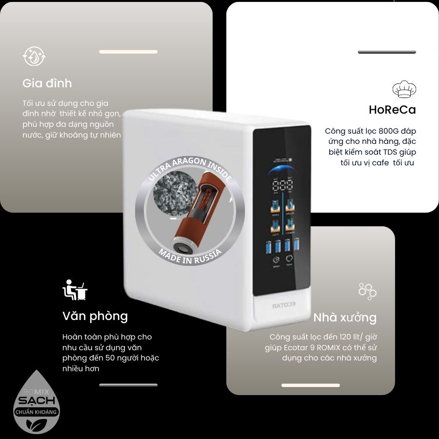 Máy lọc nước chuẩn khoáng Ecotar 9 LUX ROMIX phù hợp đa dạng như cầu từ gia đình đến thương mại