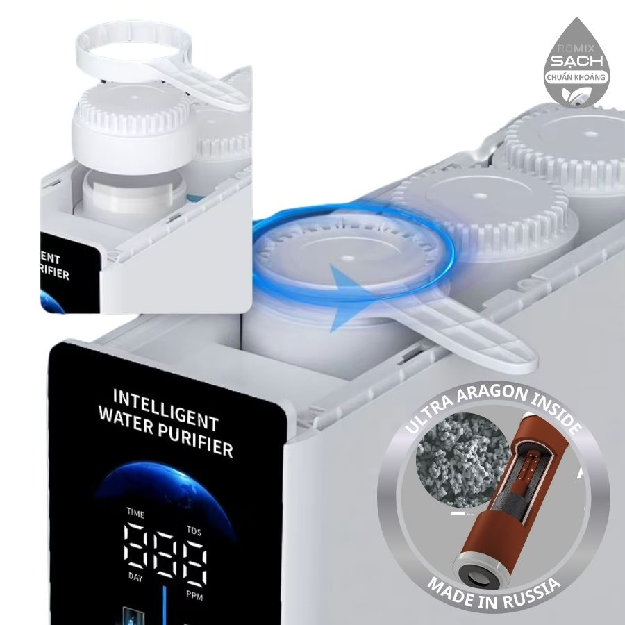 Máy lọc nước chuẩn khoáng Ecotar 9 LUX ROMIX sử dụng lõi lọc Ultra Aragon nhập khẩu nguyên chiếc LB Nga