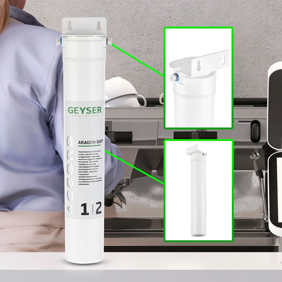 Geyser Accord Soft ROMIX là bộ lọc ba giai đoạn nhỏ gọn được thiết kế đặc biệt để cải thiện hiệu suất của nước lạnh từ hệ thống nước trung tâm được sử dụng trong các thiết bị thương mại, thiết bị làm đá và cà phê chuyên nghiệp. Bộ lọc đảm bảo điều chỉnh thành phần khoáng chất của nước nguồn, ức chế quá trình ăn mòn và hình thành cặn bám trên bộ phận làm nóng của thiết bị. Bộ lọc đưa nước đạt tiêu chuẩn cho phép bạn tối ưu hóa chất lượng của đồ uống và đá đã pha chế.