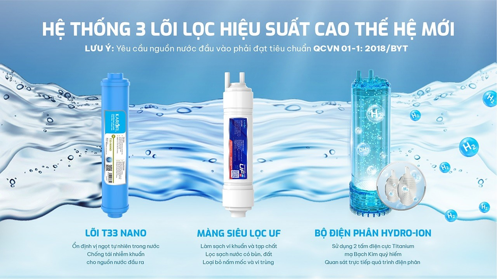 * Lưu ý: Yêu cầu nguồn nước đầu vào đạt tiêu chuẩn QCVN 01-1: 2018/BYT